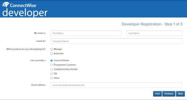 If you've already registered as a Connectwise developer, you can skip to Step 2 in this section.