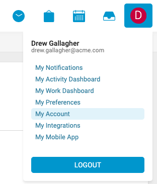 Navigate to the Profile Settings page by clicking your User Icon in Accelo, and selecting My Account.