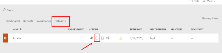 Typically, Power BI will refresh the data within the available datasets every 24 hours. However, a user can cause a manual data refresh via the Datasets tab.