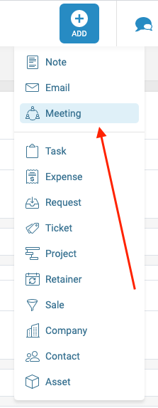 Click +Add button and choose Meeting.