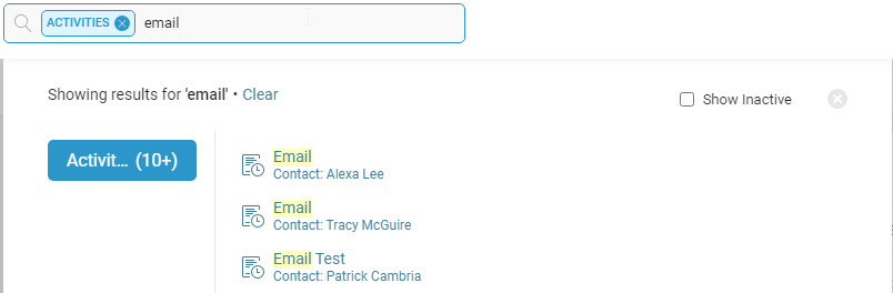 Activities are found against nearly every object in Accelo. It can be difficult to look for an individual activity that may exist under every individual Module, so we make search features available for you on most pages.