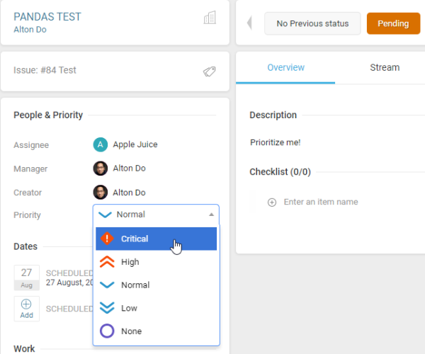 Task Priorities give a quick visual queue to assist resource managers in managing the work load for their teams. With effective use, critical work will always be taken care of first, leaving less stress for everyone on the team.