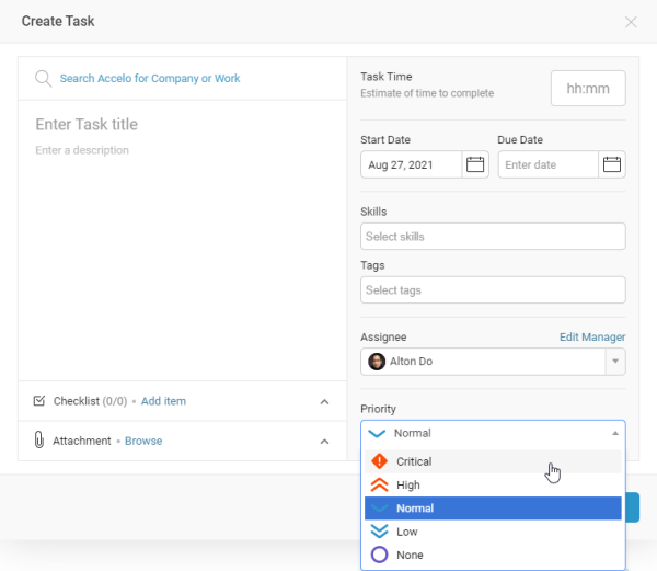 There are numerous ways you can create a Task within Accelo, which offers you multiple opportunities to deem priority right away. Simply follow these steps: