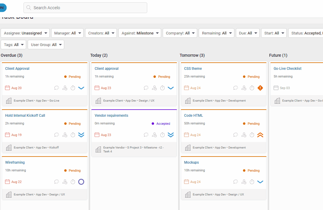 It isn't uncommon for Accelo to handle hundreds, or even thousands of active Tasks on the upcoming schedules for our users. Viewing all of these on the Task Board, Task Lists, Timesheets, and other pages can be overwhelming. In such cases, even filtering by due date isn't quite enough to effeciently schedule out work based on urgency when you have so much data to digest.