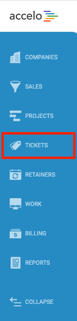 - Navigate to Tickets by clicking the Left Hand Side Menu and selecting Tickets.