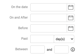 Enter the date the Ticket was submitted, the date it was submitted after, or the date it was submitted before. Search for Tickets submitted within the past X number of days, hours, weeks, months, or years. Search for Tickets submitted between a certain number of days.