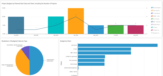 Similar to sales, most project reports focus on specific projects and their value. The Client Projects Report focuses instead on the client that projects are being performed for, summarizing budget usage, profitability and actual revenue by client. This is especially important for organizations which regularly run multiple concurrent projects for a single client.