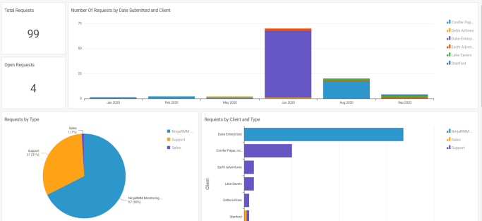 Similar to the Client Tickets report, this report is important for organizations who use Requests because it summarizes these high volume objects by client.
