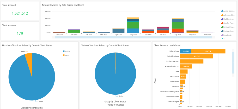 Now that you have insight into how many new clients your company is taking on, it’s critical to understand how much revenue the company is making from each client, based on how much they're actually invoicing them for. Using the Client Revenue Report, you can do just that.