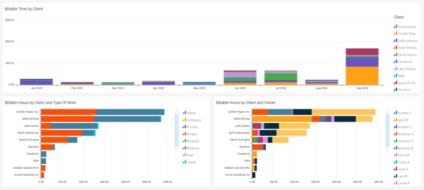 See which clients you and your team are doing the most billable work for.