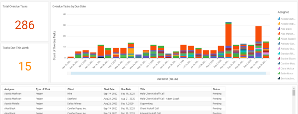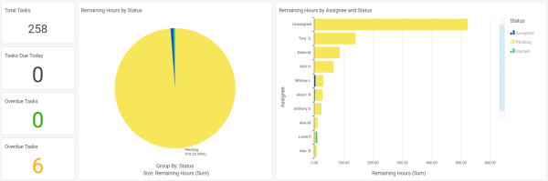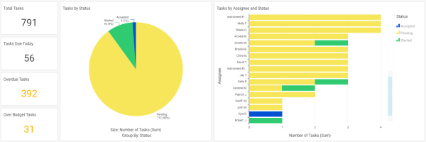 Review the number, status and assignee of all overdue tasks.