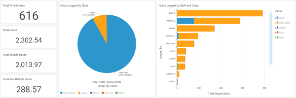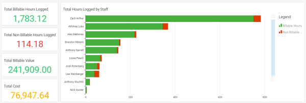 For a professional service business, costs and revenues are determined by the time which staff work. It is therefore important for these businesses to have visibility into how much time is being logged, the value and cost-to-them of that time.