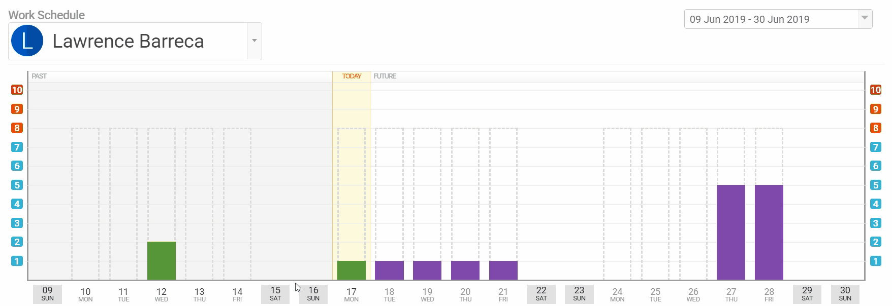 For example, if you are assigned a task with an estimated time budget of 5 hours, but don't start the task until the last day before it is due, you will be assigned 5 hours of work against that task on that day.