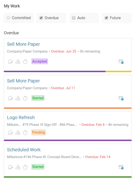 You can also see future work by checking off the Future option, which will display any work that currently does not have a due date and has been Accepted by a user.