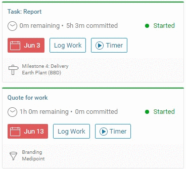 View all of your logged work and assigned Tasks in one location, making it easy to keep track of the work you have done and the work you need to do.